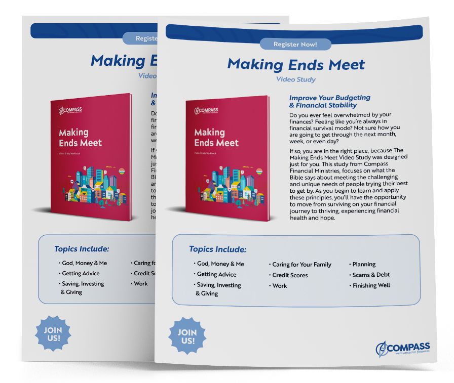 If so, you are in the right place, because the Making Ends Meet video study was designed just for you. This study focuses on what the Bible says about meeting the challenging and unique needs of people trying their best to get by. As you begin to learn and apply these principles, you’ll have the opportunity to move from surviving on your financial journey to thriving, experiencing financial health and hope.
